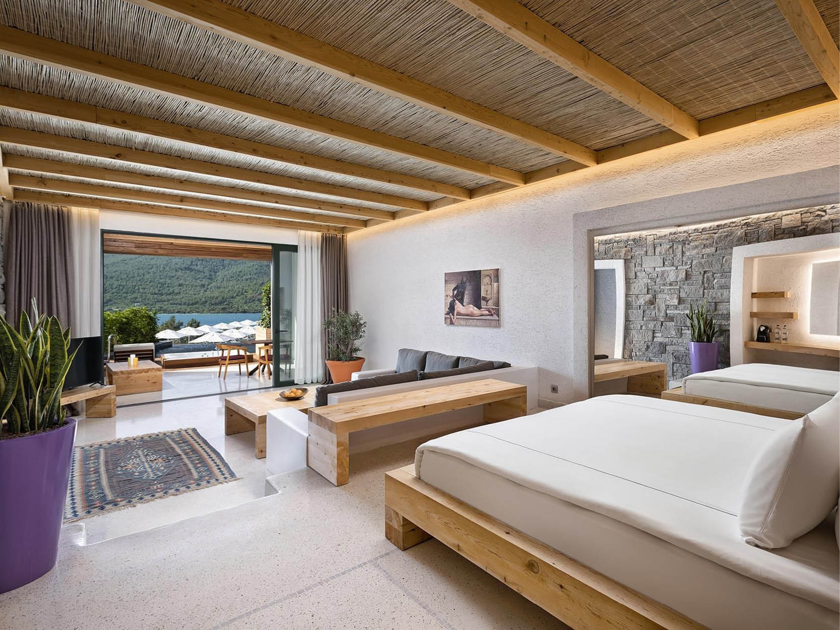 Titanic Luxury Collection Bodrum’da standart deniz manzaralı odaların dışında önünde havuzu olan farklı tipte ‘swim up’ odalar ve üç farklı tipte de villa bulunuyor.